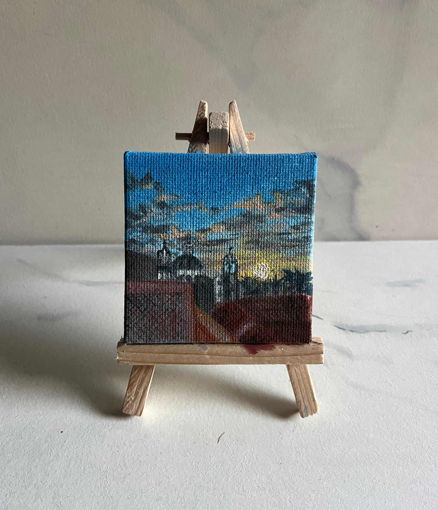 Met gouache, acryl of olieverf creëer ik schilderijen die een gevoel van nostalgie en geborgenheid oproepen. Ik laat me inspireren door herinneringen en omgevingen die mij een gevoel van comfort hebben gegeven, en vertaal die naar beelden van landschappen, portretten, stadsgezichten, gebouwen en vormen uit mijn omgeving.